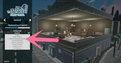 租房达人顾名思义玩家将扮演一个房东,你可以通过出租房屋赚钱,这里还加入一些随机事件,丰富玩家的体验。游戏非常有趣,吸引了不少国内玩家,但是游戏打开后默认都是英文,怎么设置中文呢?很简单,你先打开OPTIONS进入设置菜单,之后点击最下方的选项,展开之后就能看到简体中文,选择并保存设置即可。