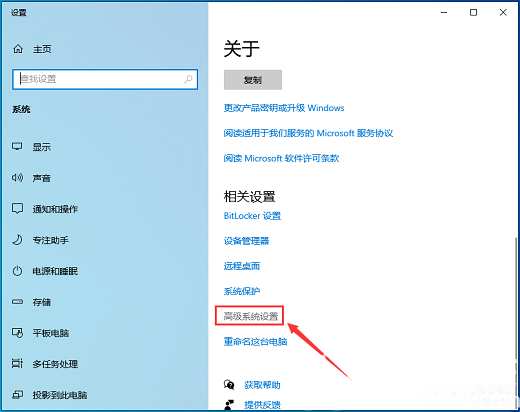 2、系统主页设置窗口,右侧点击相关设置下的【高级系统设置】;