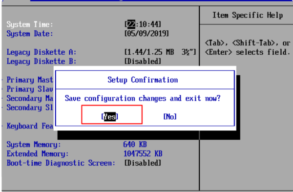 三、按F10键选择红色方框中的YES,如下图所示: