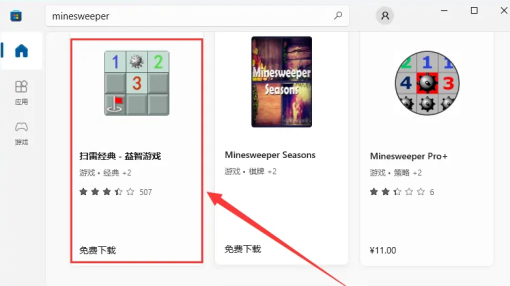 4、在搜索结果中,点击选择需要下载的“扫雷”游戏。