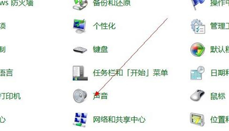 2、接下来在“控制面板”中点击如图的“声音”按钮。