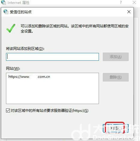 6、输入你要添加的站点网址,点击添加按钮,如下图所示。