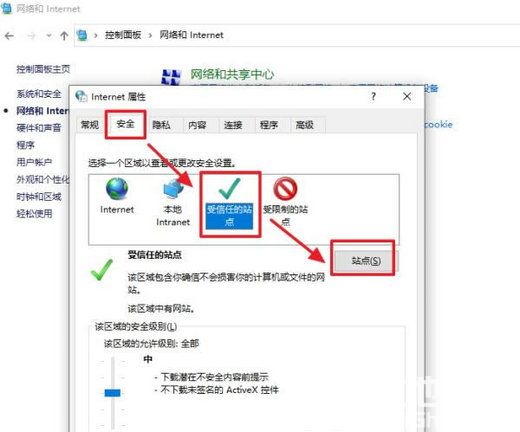 如果遇到某个网站无法安全访问的情况,很有可能是因为它不被信任,那么在win10系统中edge怎么设置信任站点呢?大家需要先打开控制面板,进入Internet选项,之后切换到安全选项卡,选择受信任的站点,点击站点、添加,然后将目标网站的网址输入进入,之后点击关闭按钮就算完成信任站点的设置了。