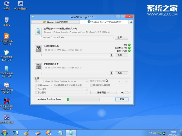 1、 进入系统之家pe系统后首先我们会看到自动打开的系统之家备份还原工具,这个工具是安装Ghost版系统的工具,如果要安装Ghost版系统的话直接用这个装就好了,非常的简单方便。我们这里是安装原版的系统,所以不用这个,我们关掉它。