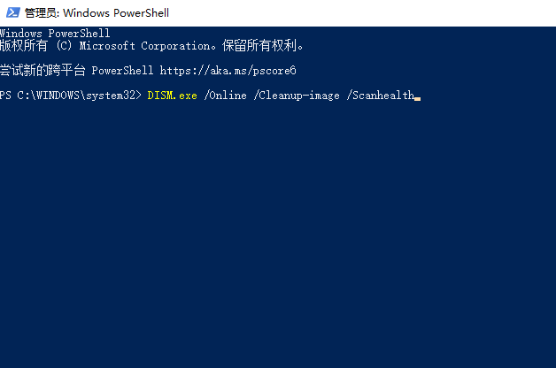 5.接着我们打开命令页面后,输入“DISM.exe /Online /Cleanup-image /Scanhealth”并按下回车,运行完毕后关闭页面。