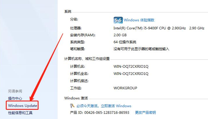 4、打开控制面板,点击系统和安全按钮,接着点开系统选项,进入页面后点击左下角的windows Update。