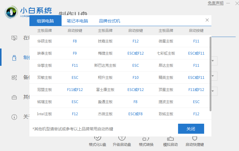 6、我们还可以点击快捷键大全查看我们的电脑的启动快捷键是什么。