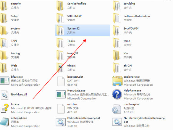 4、Windows文件夹找到并双击【System32】打开文件夹;