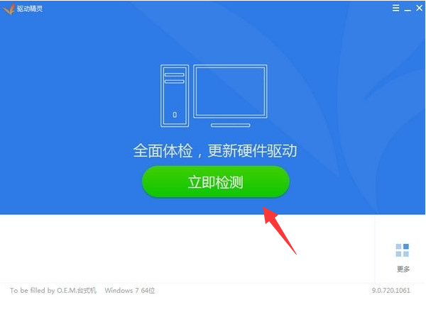 1、下载安装驱动精灵,安装完成后双击打开。单击【立即检测】按钮。
