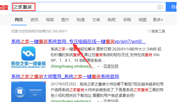 1.首先打开电脑上的浏览器搜索之家重装,然后进入系统之家官网下载系统之家一键重装工具。