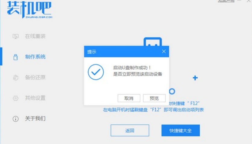 2、等待制作完成,查看热键,拔出u盘。