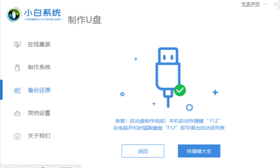 3、等待制作完成后,打开查看需要安装的电脑的启动快捷键,然后再拔掉u盘。