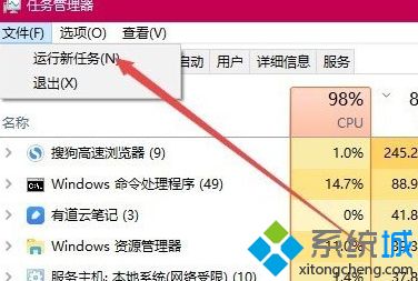 2、在打开的任务管理器窗口中,依次点击“文件/运行新任务”菜单项;