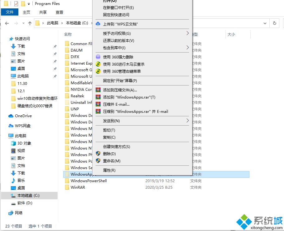 2、进入Program Files目录下,打开“WindowsApps”文件夹