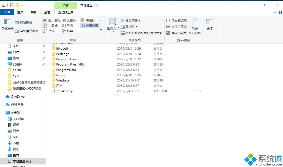 1、打开此电脑,进入电脑C盘,将上方的选项卡切换到“查看”,再将“隐藏的项目”勾选。