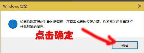 6、最后会弹出一个“Windows安全”窗口,等待“更改所有权”更改完毕,最后再点击确定即可。