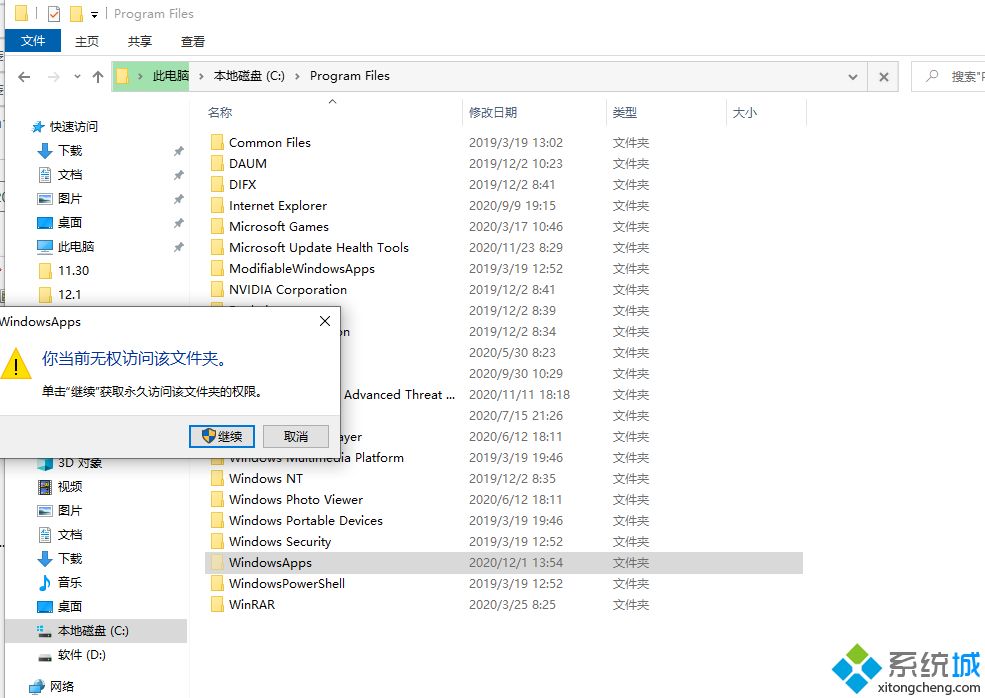 3、在C:\Program Files\WindowsApps路径下,可以看到应用商店的安装目录。不过直接这样是打不开的,需要获取权限后再次打开即可查看。