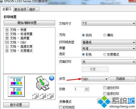 2、这时我们会发现有一个选项 多页这里 有一个 2合1,没错就是这个问题;