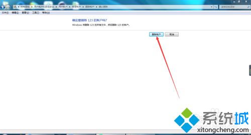 6、下一页之确定是否删除该用户帐户,点击删除即可。
