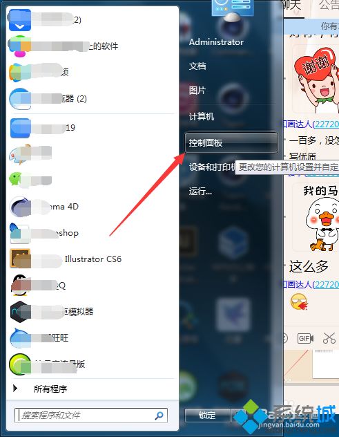 2、在开始菜单中我们找到”控制面板,点击打开。控制面板里打开用户管理(添加或删除用户帐户)这项。