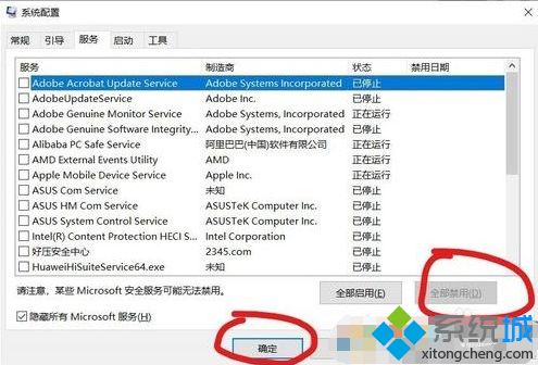 3、下方勾选隐藏所有Microfsoft服务,那么留下来的都是第三方服务了。