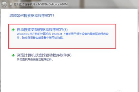 5、弹出选项,选择“自动搜索更新的驱动程序软件”;