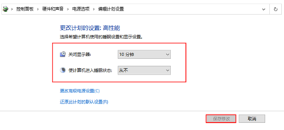 4、或者打开控制面板,依次找到“硬件和声音”→“电源选项”→“更改计划设置”,即可设置关闭显示器时间;