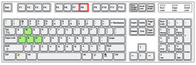 2、若重启无法进入,则按下电源键,等显示器亮起就马上按下“F8键”打开高级启动选项;