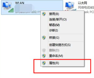 5、看到你的“无线网络连接”,右键单击,选中“属性”打开;