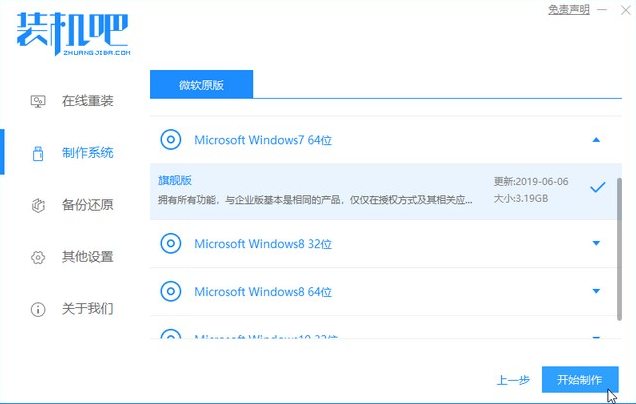 3,在这里我们可以选择自己需要安装的Windows7系统,然后点击“开始制作”。