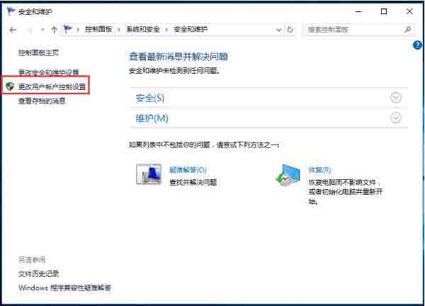 3、点击“安全性与维护”。如图所示: