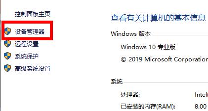 2、进入后点击左侧任务栏中的“设备管理器”。