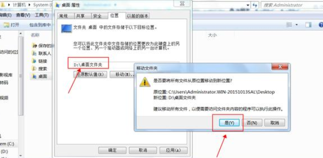 5、点击确定,弹出“移动文件夹”的警告框,点击“是”即可。